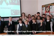 В рамках месячника гражданско-патриотического воспитания, 20 февраля Шипицына З. М. и Тартмина И.В. провели клубный час «Дети в годы Великой Отечественной войны» среди учащихся групп продлённого дня. Воспитатели познакомили ребят с тяготами войны, выпавших на долю детей той поры: голод, холод, страх, непосильный труд. Использованная презентация наглядно повествовала о бесконечно прожитых днях на оккупированной фашистами территории, в концлагерях, в блокадном Ленинграде, в тылу страны. У детей войны не было детства. Его отняли фашисты. Не смотря на это, мальчишки и девчонки приближали Победу в тылу и на фронте. В память об умерших и погибших маленьких героях были зажжены свечи, проведена минута молчания.