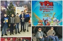 В зимние каникулы уч-ся 7 «А» и 8 «Б» классов вместе с классными руководителями посетили кинотеатр «Джалиль» и посмотрели новую серию мультфильма про трех богатырей «Три богатыря и принцесса Египта». Такие мультфильмы нравятся как взрослым, так и конечно детям. Каждая серия может похвастаться чем-то особенным, оригинальным и смешным. Главная тема этой истории - Новый год, детям очень понравились яркие новогодние картинки: русская зима, по которой мы истосковались - со скрипучим снегом и порхающими снежинками - показана в нем очень наглядно и празднично. Елки, санки, подарки, - все привносит новогоднее настроение.