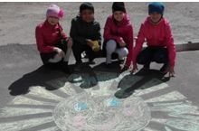 Ученики с огромным удовольствием рисовали на асфальте цветными мелками.