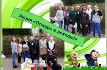 23 апреля Детский эколого-биологический центр при участии Экологической организации НМР провел акцию «Отходы в доходы», в которой приняла активное участие и наша школа. На пункт приема макулатуры, целлофана и пластика, расположенного на площадке перед Дворцом творчества детей и молодежи, ученики 7а и 8в классов принесли более 30 килограммов!