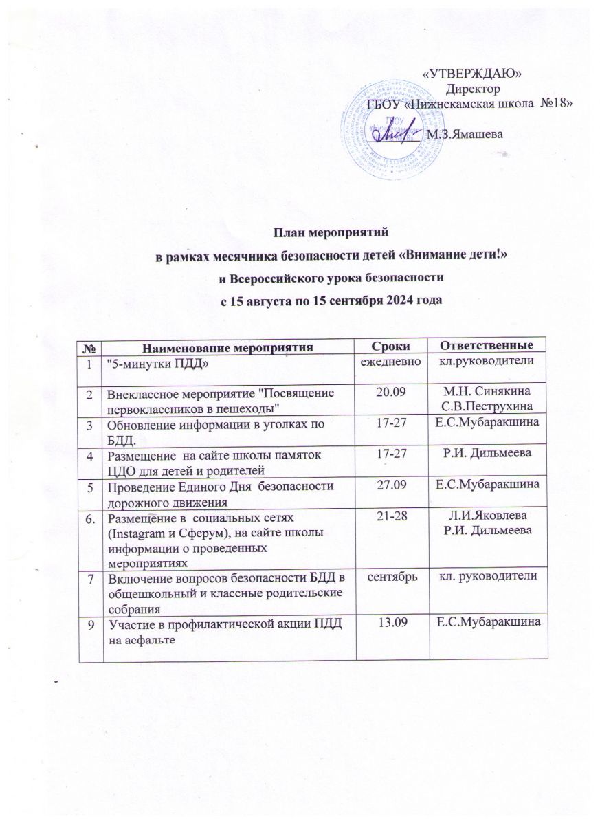 План мероприятий в рамках месячника безопасности детей Внимание,дети! 2024-25 г.