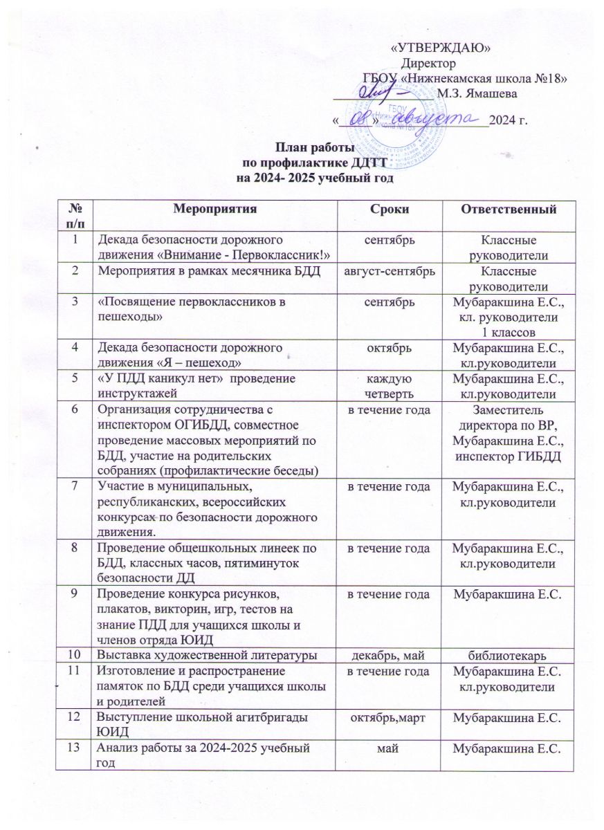 План работы по профилактике ДДТТ на 2024-25 уч.год
