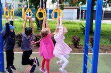 В детском саду есть все условия для физкультурной подготовки.А как детям нравится все эти спортивные игры!!!