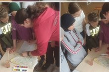Учащиеся начальных классов попробовали новую технику печати с помощью картошек, яблок и т.д. Это быстрая техника для выполнения поздравительных открыток или рисунков.
