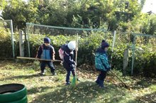 Воспитанники МБДОУ помогают в уборке территории
