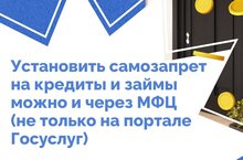 Напомним, что с 1 марта этого года на портале «Госуслуги» появилась возможность установки самозапрета на получение кредитов. Эта мера была реализована по нацпроекту «Экономика данных и цифровая трансформация государства». С 1 сентября установить запрет на получение кредитов можно и в офисах МФЦ.