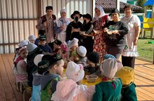 Кунакларны каршылау балалар бакчасының мини-музеенда башланып китте. Экскурсовод ролендә балалар булды. Алар саф татар телендә матур итеп татар халкының борынгы көнкүреш җиһазлары һәм мәдәнияте турында сөйләделәр.