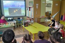 Буген безгэ кунакка чираттагы сюрпризы белэн китапханэче Лэйсэн апабыз килде. Слайдлар курсэтеп балаларга космос турында сойлэде. Зур рэхмэтебезне белдерэбез Лэйсэн апабызга.