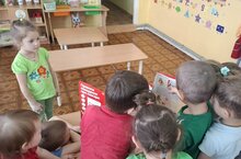 Ребятам были предложены игровые задания: "Найди книгу по описанию", "От кого получена телеграмма", "Книжкин доктор", поводили "Хоровод дружбы".