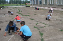 В пришкольном лагере прошёл конкурс рисунков на асфальте "Праздник солнца"