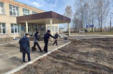Для того чтобы клумба радовала ярким цветением всё лето, нужно подготовиться заранее. Ученики старших классов в рамках эколого-санитарного двухмесячника подготавливают пришкольную клумбу.