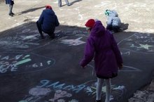 Учащиеся начальных классов перед Днем Победы разучивают песни, стихи, делают поделки к празднику, а в день праздника провели конкурс рисунка на асфальте.