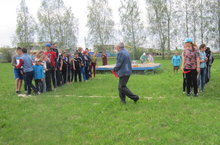 Праздник продолжался на стадионе. Ребята командами прошли по станциям, выполняя задания инструкторов, где последняя станция была спортивной. Праздник закончился походным обедом, который был принесен поварами прямо на стадион.
