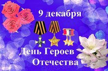 День Героев Отечества в России - это памятная дата, которая отмечается в нашей стране ежегодно 9 декабря. Она установлена Федеральным закон Российской Федерации №22-Ф3 от 28 февраля 2007 года «О внесении изменения в статью 1-1 Федерального закона «О днях воинской славы и памятных датах России» В этот день в нашей школе прошли классные часы посвящённые Героям Советского Союза – нашим землякам