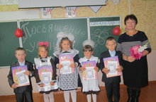 После некоторых испытаний сказочных персонажей 5 первоклассников были посвящены в ученики. Незнайка прочитал им напутственные слова. Директор школы Сафина Л.И. вручила подарок главы НМР А.Р. Метшина – «Азбуку». Гостями праздника были родители первоклассников. Поздравляем ребят и их родителей!