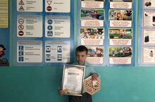 "Әти, әни, балалар хәрәкәт кагыйдәләренең мөһим булуын белергә тиеш" номинациясендә ТР МР башкарма комитеты мәгариф идарәсенең ДБУ "Юл хәрәкәте иминлеге" Дипломы белән 1 нче сыйныф укучысы Курицын Геннадий бүләкләнә.