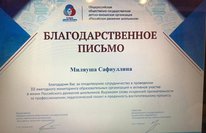 Сафиуллина Милауша Ибрагимовна, педагог-организатор школы была награждена Благодарственным письмом за плодотворное сотрудничество в проведении III ежегодного мониторинга образовательных организаций и активное участие в жизни Российского движения школьников.