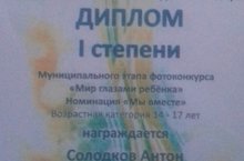 Подведены итоги муниципального этапа фотоконкурса "Мир глазами детей" в номинации "Мы вместе" - Диплом I степени Солодков Антон (пед. Галимов И.Г.), Сертификат участника Галиева Ангелина (пед.Галимова А.А.).