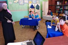В рамках Декады родного языка учитель русского языка и литературы Ахмадиева Д.Т. в 5 классе провела викторину. Игра была построена по типу телепередачи "Своя игра" и была посвящена 100-летию ТАССР. Участники имели возможность на экране выбирать категорию вопроса и его стоимость. Были "Вопрос-аукцион", "Кот в мешке". Цель игры: расширение представлений детей о родном крае, культуре и традициях, живущих в Татарстане.