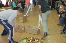 Выставка организована классными руководителями и воспитателями 1-9 классов. Каждый класс приготовил оригинальные поделки и овощи с фруктами.