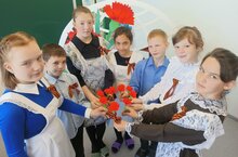Елена Марсовна мәктәп укучылары өчен кызыл канәфер ясау буенча мастер-класс күрсәтте.