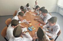 Патриотик тәрбия кысаларында мәктәп психологы Имамова С. Р. һәм технология укытучысы Тузеева Т. П. фильмны карау оештыралар.