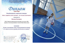 Поздравляем ученицу 6 класса Якимову Екатерину и её руководителя Галимова И. Г. Дипломом Гран-При Республиканского творческого конкурса в номинации Лучшее стихотворение, песня, театрализованная постановка "Со спортом мы всегда дружны, нам болезни не страшны!"