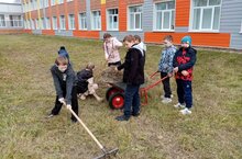 Хезмәт укытучысы Н. М. Нәфыйкова җитәкчелегендә балалар мәктәп территориясен тәртипкә китерергә чыктылар.