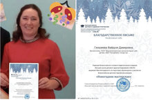 Педагог-куратор Әхмәдиева Дилбәр Тәлгать кызы укучыларны "Яңа ел остаханәсе" Бөтенроссия балалар иҗат конкурсында катнашуга әзерләгән өчен "S - BA,RU эшлекле администрациянең югары мәктәбе" Бөтенроссия челтәр педагогик басмасы редакциясеннән рәхмәт хаты алды.