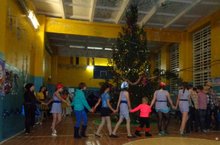29 декабря в 10 часов в школе прошёл новогодний утренник для учащихся 1-5 классов. Дети с классными руководителями водили хороводы возле красавицы - ёлочки, пели песни, танцевали, участвовали в конкурсах и забавах. В 17 часов прошёл Новогодний праздник "Идёт коза рогатая..." у старших классов.