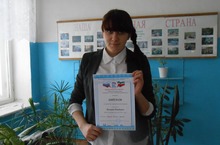 Участница конкурса, посвященного 25-летию вывода войск из Афганистана, ученица 9 класса Волкова Виктория награждена Дипломом за точность жанрового воплощения за сочинение "России верные сыны". Руководитель: Хадиева Татьяна Адамовна.