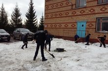 "ЭкоЯз - 2018" икеайлыгы уңаеннан мәктәп территориясен кардан чистарту 11.04.2018