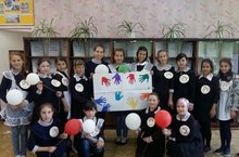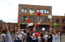 Сегодня запустили в небо гелиевые шары в рамках акции Единый час духовности “Голубь Мира”. К шарам были привязаны бумажные голуби, на которых ученики отряда “SMS – дети” написали имена погибших героев, участников ВОВ, кто отдал свою жизнь, защищая других