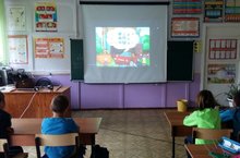 Юлда йөрү куркынычсызлыгы атналыгы башлану уңаеннан бүген 1-5 сыйныфлар өчен актлар залында "Велосипед", "Куркынычсыз юл" дигән мультфильмнар күрсәтелде
