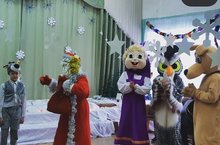 Бәйрәмнең иң мөһим вакыйгасы -кыш бабай килү булды. Һәр бала матур шигырен сөйләп Кыш бабайдан Яңа ел бүләге алды. Бәйрәмне әкият геройлары Акбай, Маша һәм Ябалак тагын да ямьләндерде. -