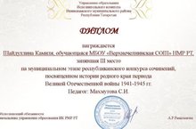Диплом призера муниципального этапа Республиканского конкурса сочинений 16.11.2020