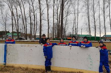Волонтер укучылар мәктәп яны хоккей коробкасын җыюда көчләреннән килгән кадәр ярдәм иттеләр. 30.10.2020