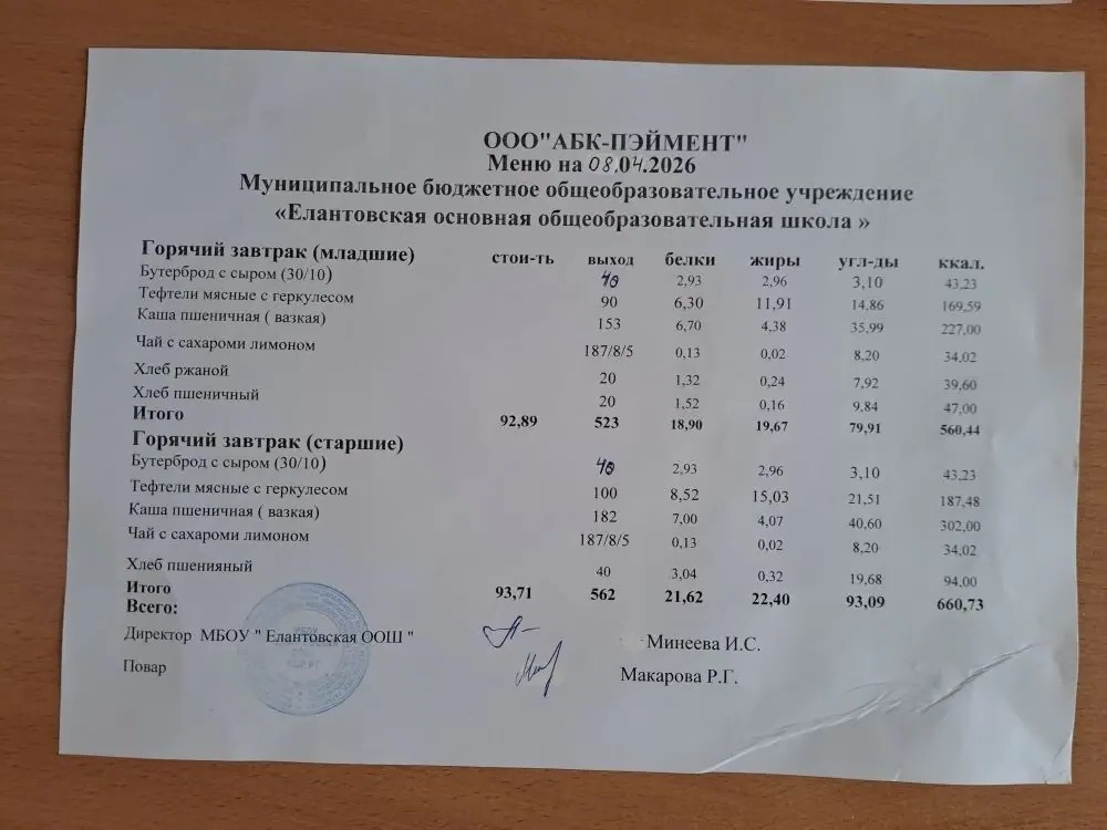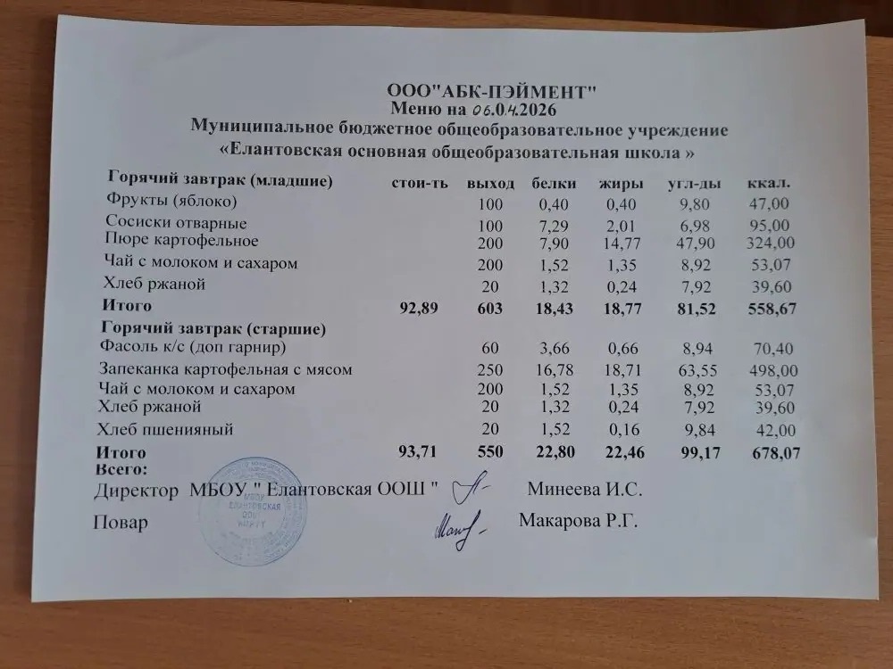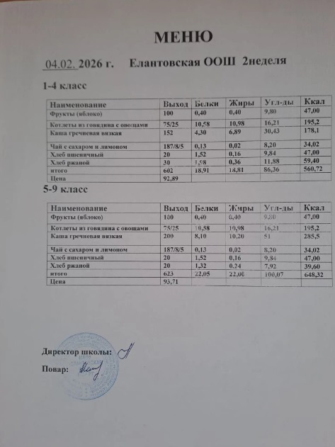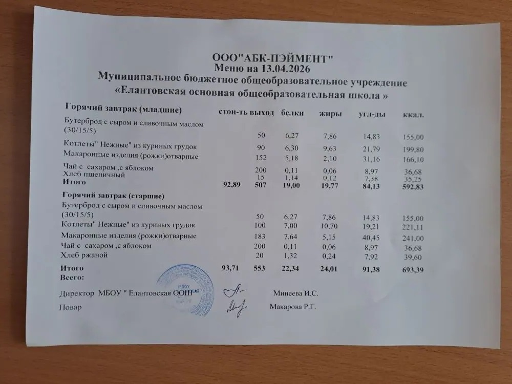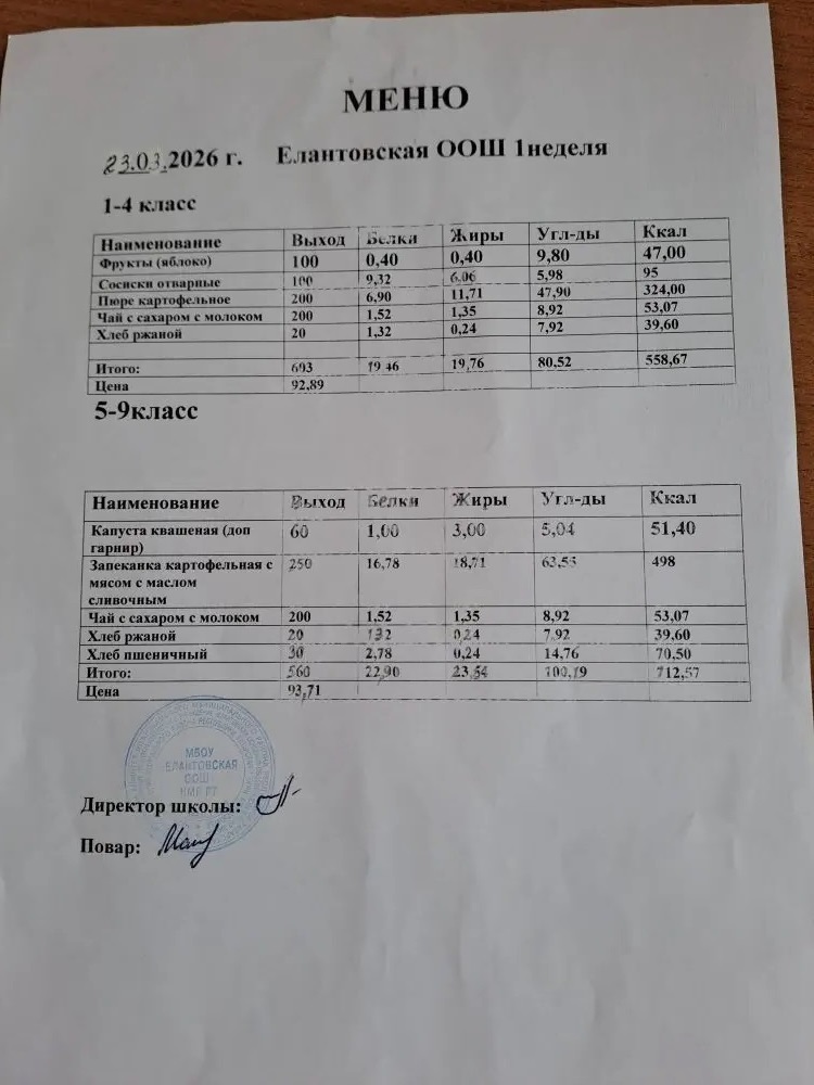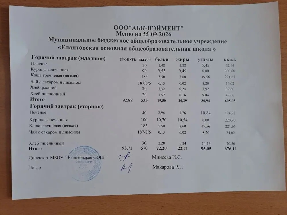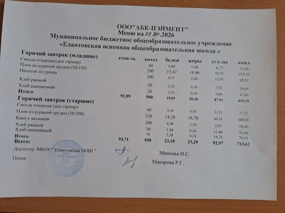 Положение об организации питания обучающихся в МБОУ "Елантовская ООШ"