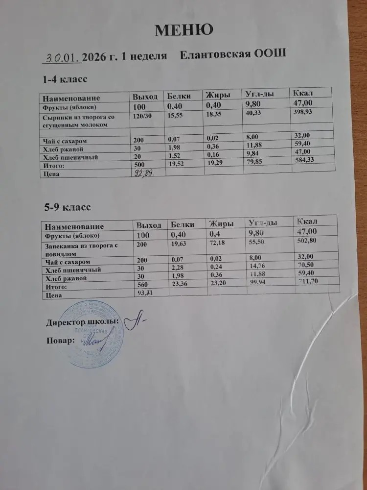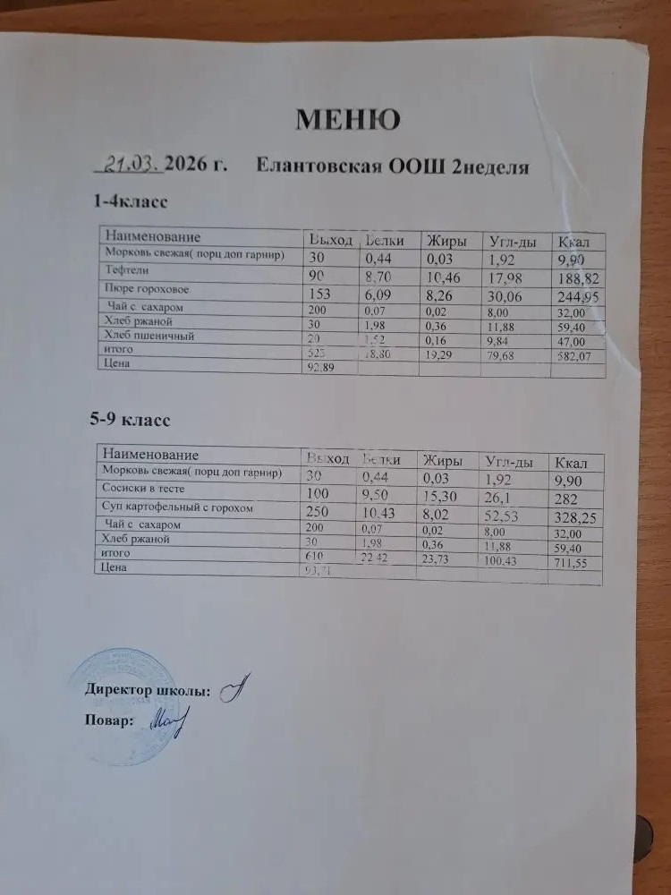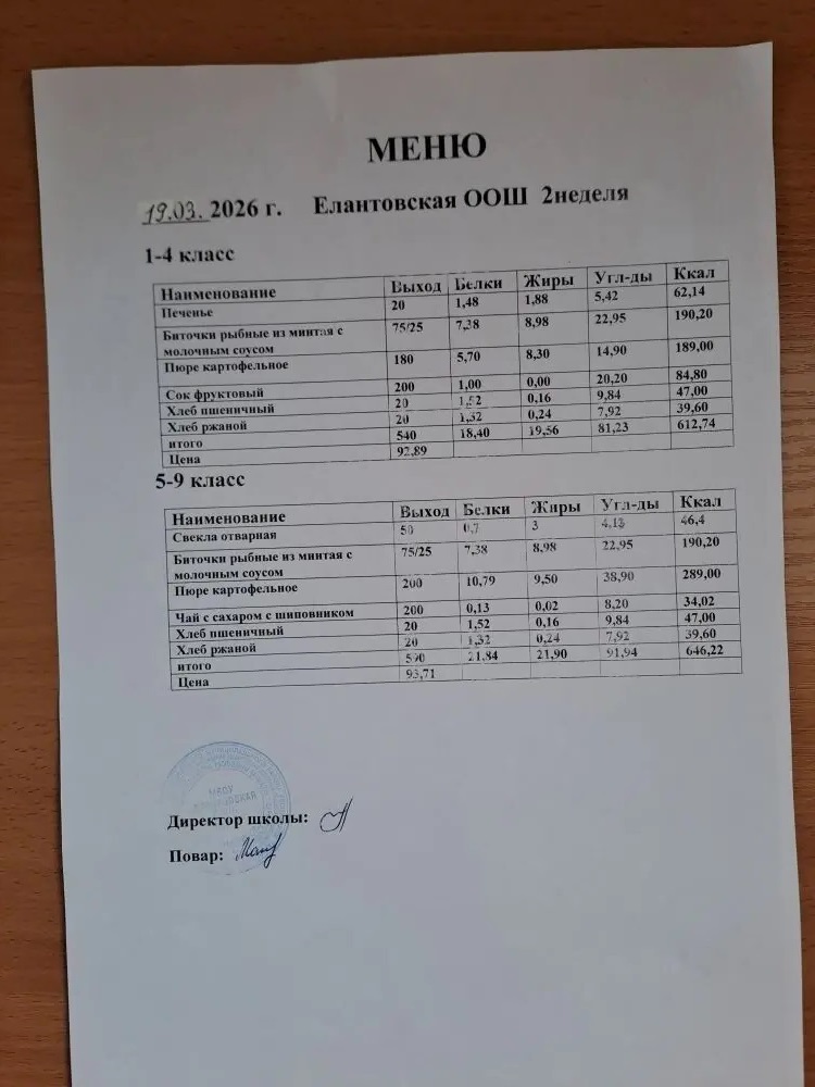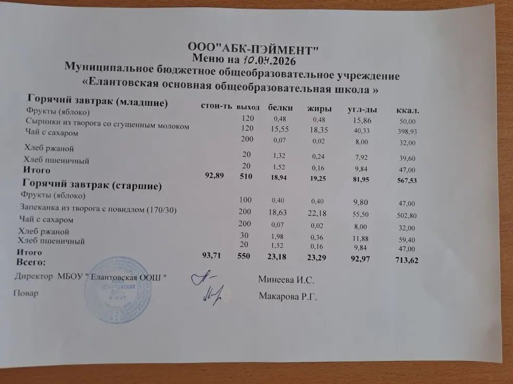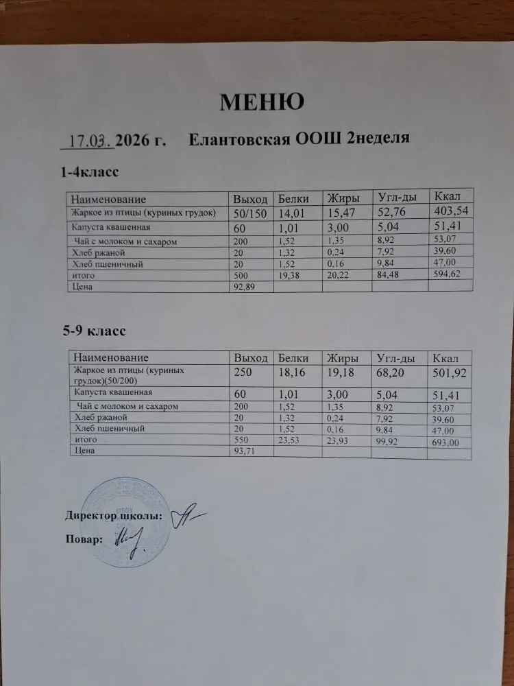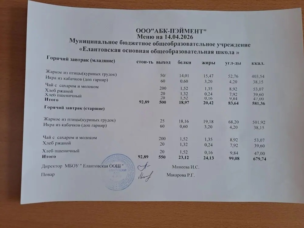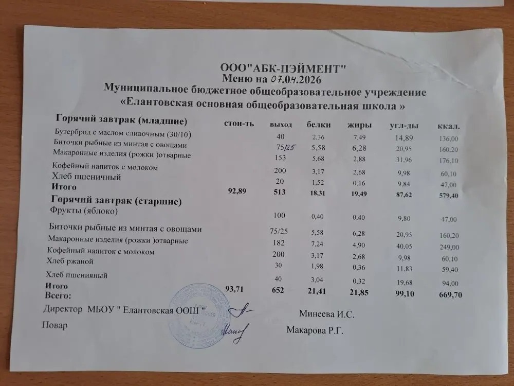 Положение об организации питания обучающихся в МБОУ "Елантовская ООШ"