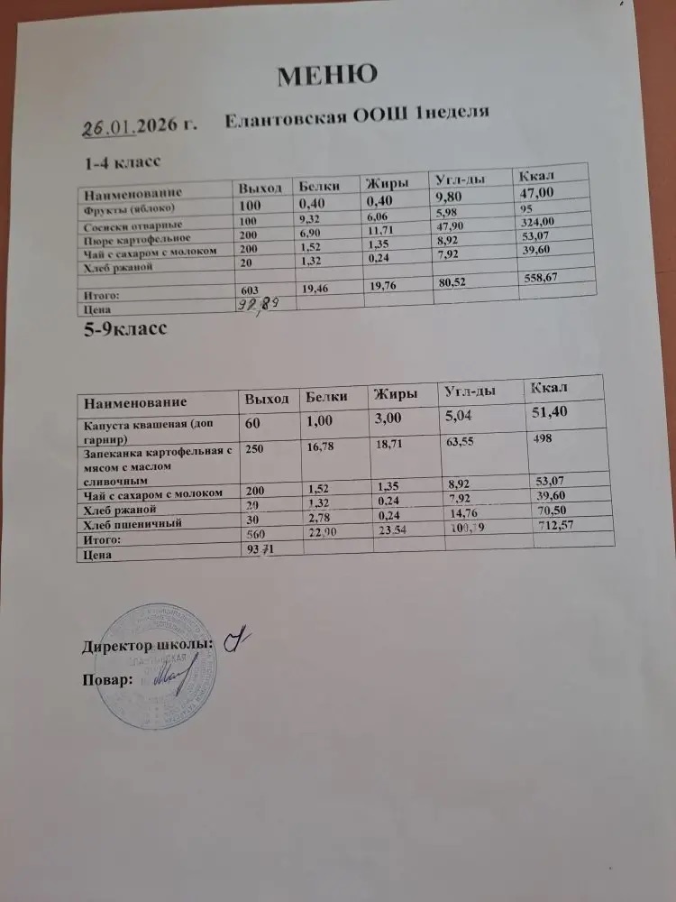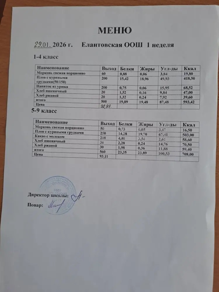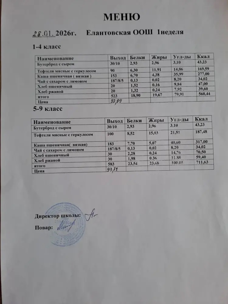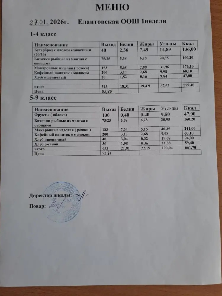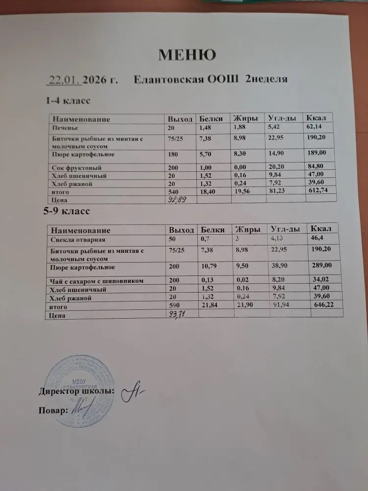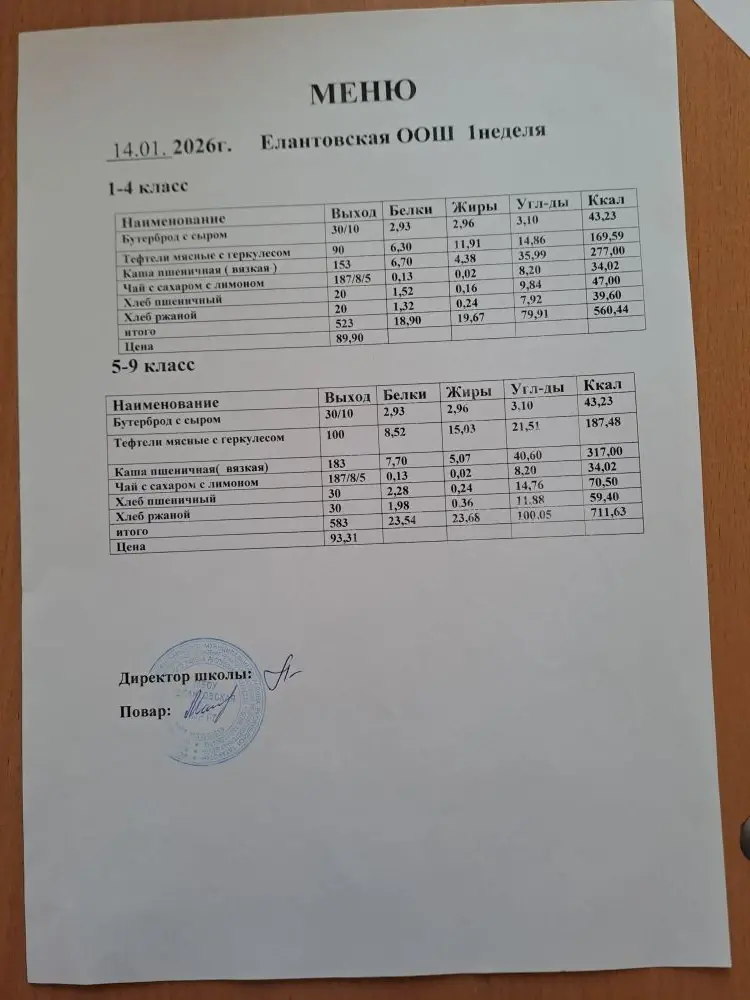 Двухнедельное меню для 1-4 классов c 1 сентября 2025 г.