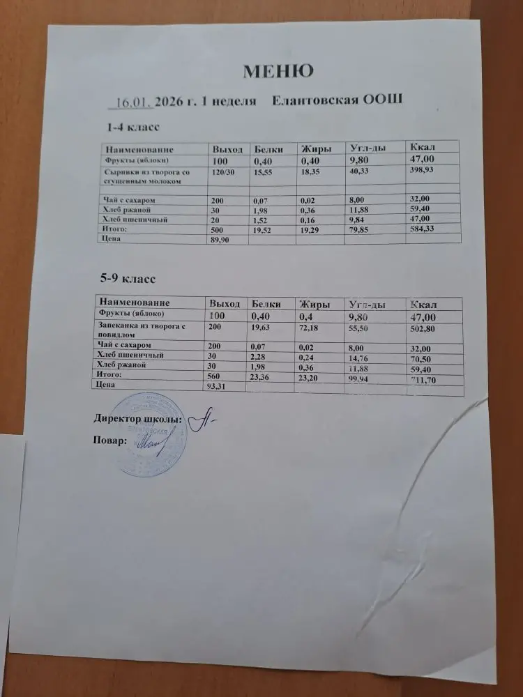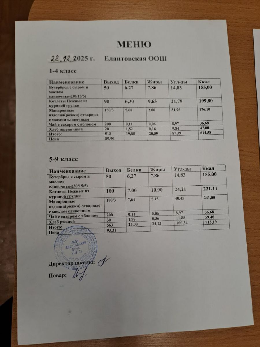Двухнедельное меню для 5-9 классов c 1 сентября 2025 г.