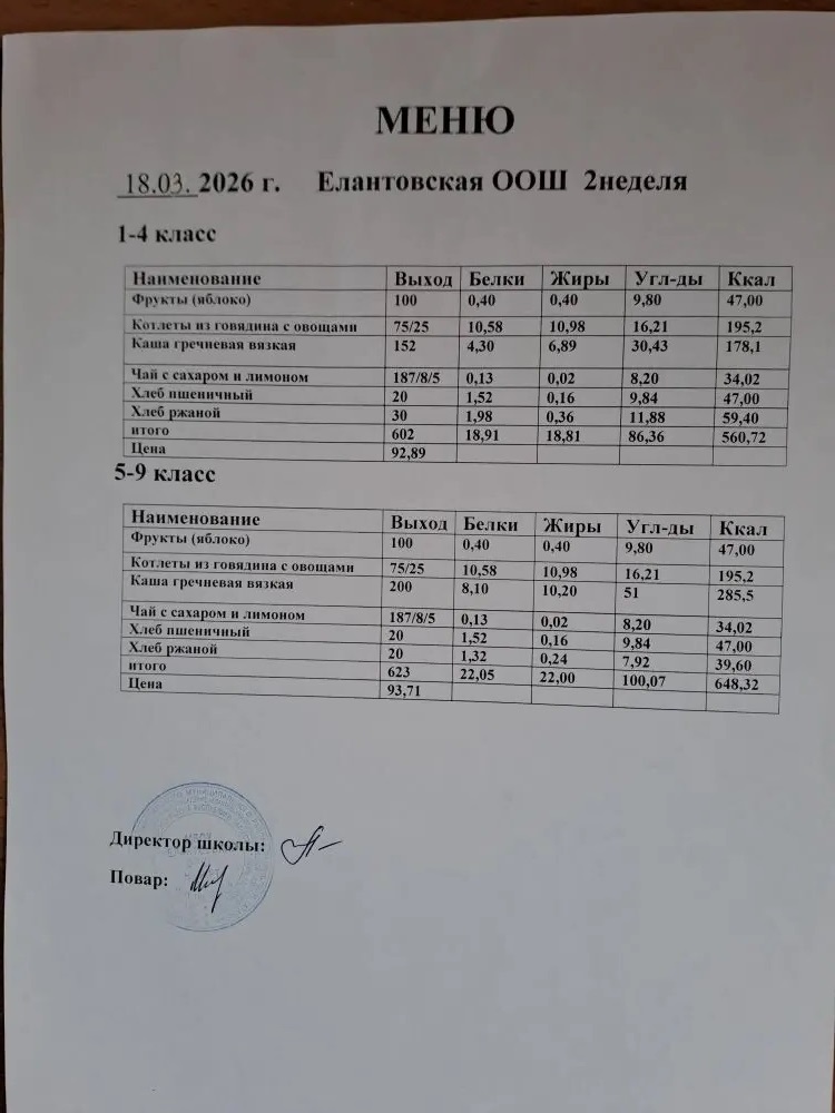 Двухнедельное меню для 1-4 классов c 1 сентября 2025 г.