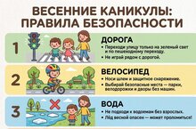 Весенние каникулы с 28 марта по 5 апреля. Берегите себя, Будьте осторожны на дорогах, катаясь на самокатах, не выходите на лед! 26.03.2026