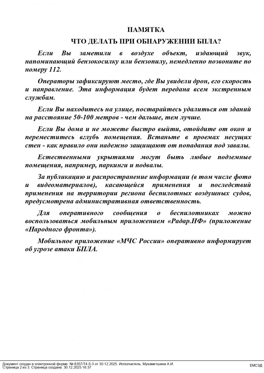 Памятка о действиях при обнаружении БПЛА 12.01.2026