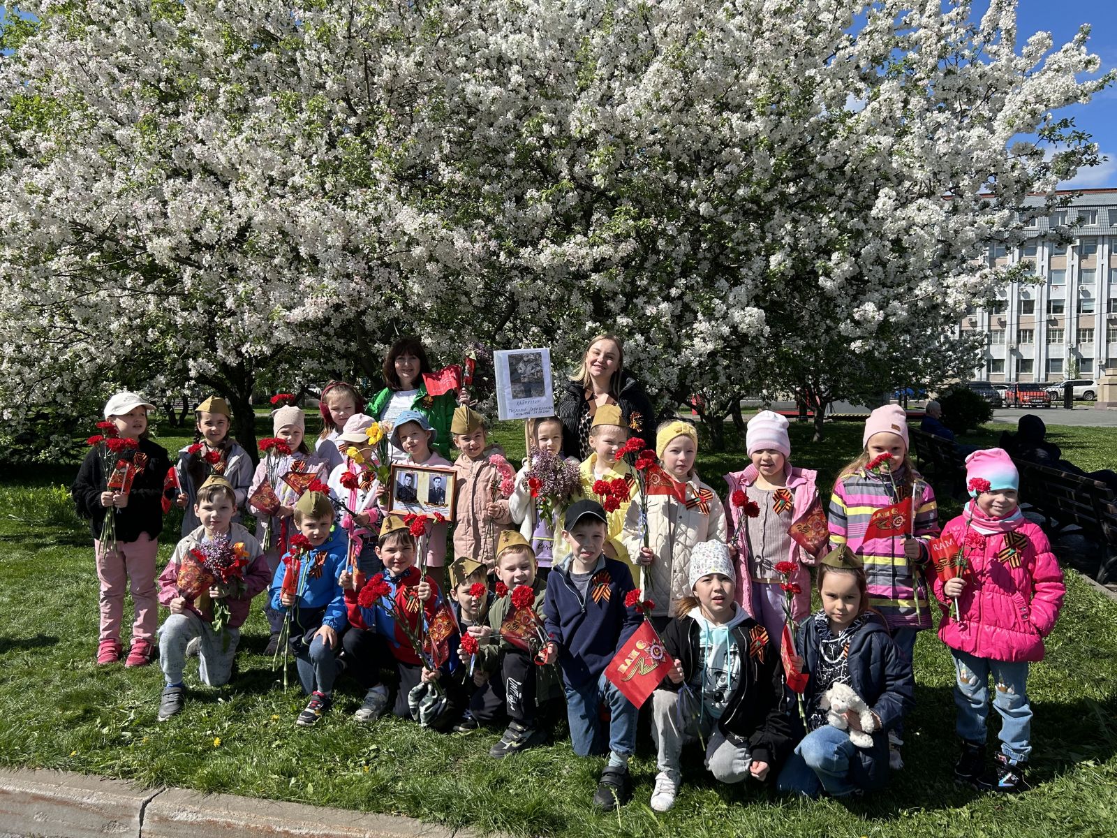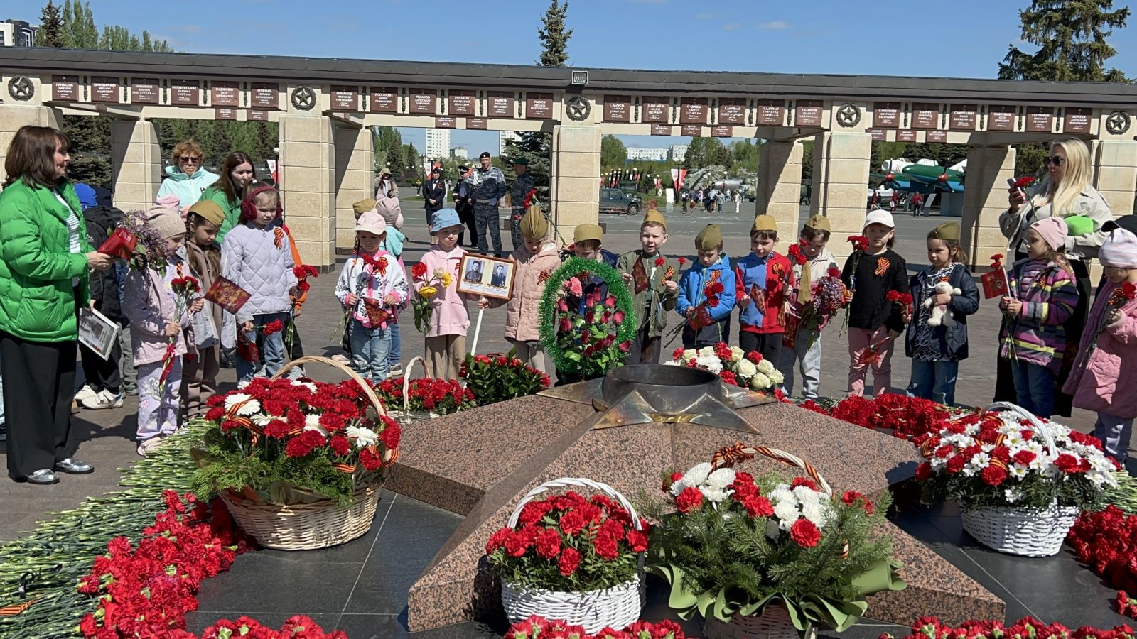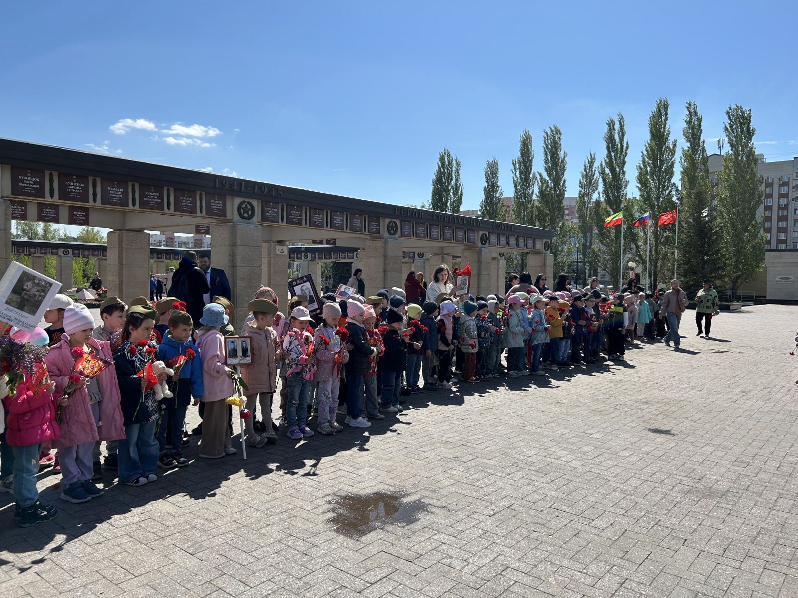 Сегодня воспитанники старших и подготовительных к школе групп посетили Мемориальный парк Победы, чтобы почтить память тех, кто защищал нашу Родину в годы Великой Отечественной войны. Ребята возложили цветы к вечному огню, прошли по аллеям вдоль монументов с фотографиями своих родственников, участвовавших в тех собитиях, рассказывали стихотворения и пели песни военных лет. В память о погибших в Великой Отечественной войне была объявлена минута молчания. День Победы - важный и знаменательный праздник для нашей страны, ведь в каждой семье хранят память о предках, которые "ковали" Великую Победу ценою своей жизни.