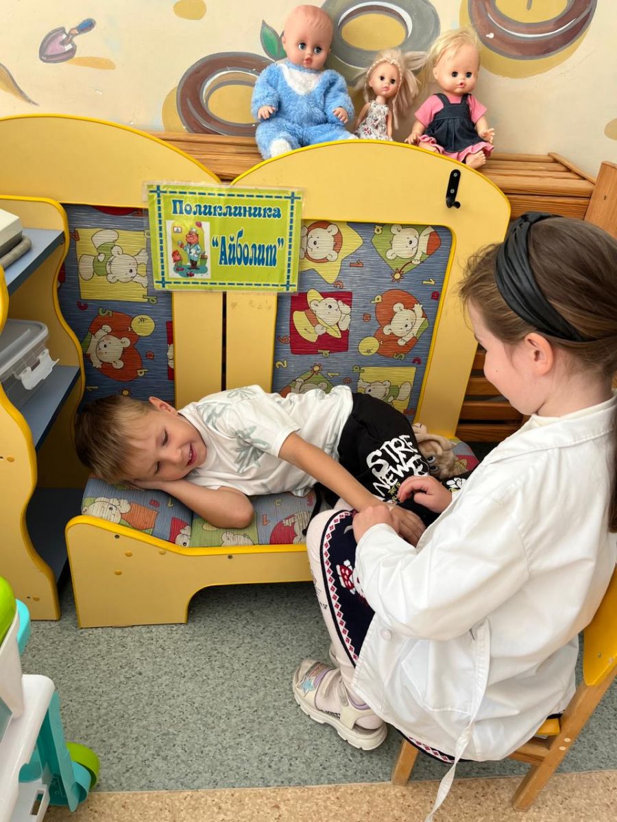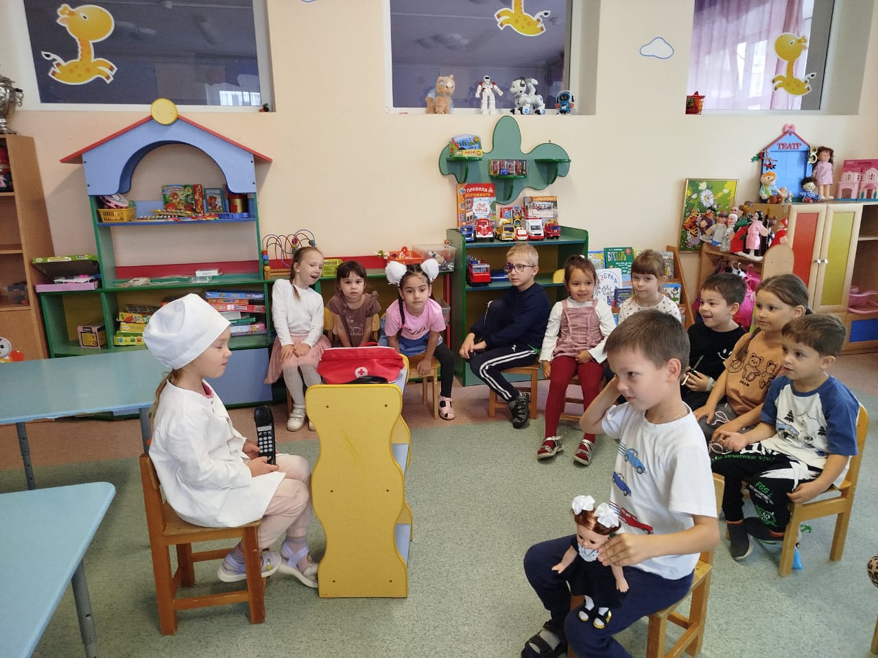 Для групп среднего возраста воспитатели провели занятия на тему «Доктор спешит на помощь». Цели: формировать представление детей о функциях доктора и его работой. Вызвать интерес к проведению сюжетно-ролевых игр, воспитывать чувство заботы и оказания помощи ближнему. Развивать общую моторику, укрепление вестибулярного аппарата, укрепление мышц туловища и конечностей.Закреплять понятия: «части тела», «части транспорта», «правила безопасности».