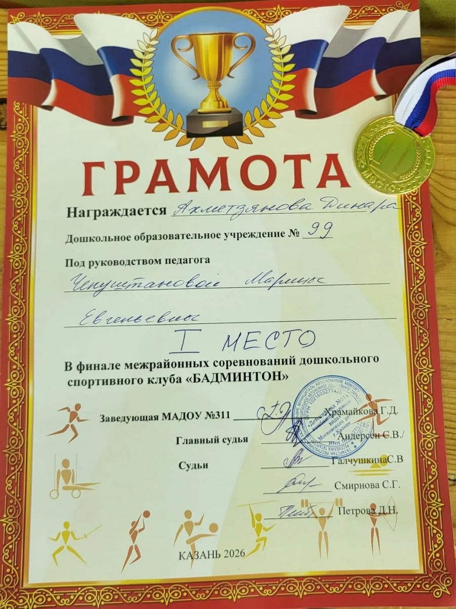 Сегодня состоялись межрайонные соревнования ДСК по Бадминтону. В личном первенстве среди мальчиков и девочек, наши воспитанники, Систяков Матвей и Ахметзянова Динара, под руководством Марины Евгеньевны, заняли 1 места! Поздравляем педагога и ребят с большим