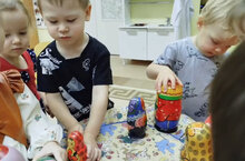 Сегодня самые юные воспитанники с интересом изучали необычную деревянную игрушку. Затем дети с нетерпением ждали появления матрешек-сестричек – что же таится там внутри, какая она, самая маленькая куколка!
