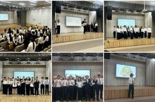 В зале была атмосфера праздника-творческие номера в исполнении ребят 9"А" и 10 "А" классов, небольшие интерактивные задания,подготовленные 11"А" классом, которые позволили ребятам показать свои коммуникативные и лидерские качества.