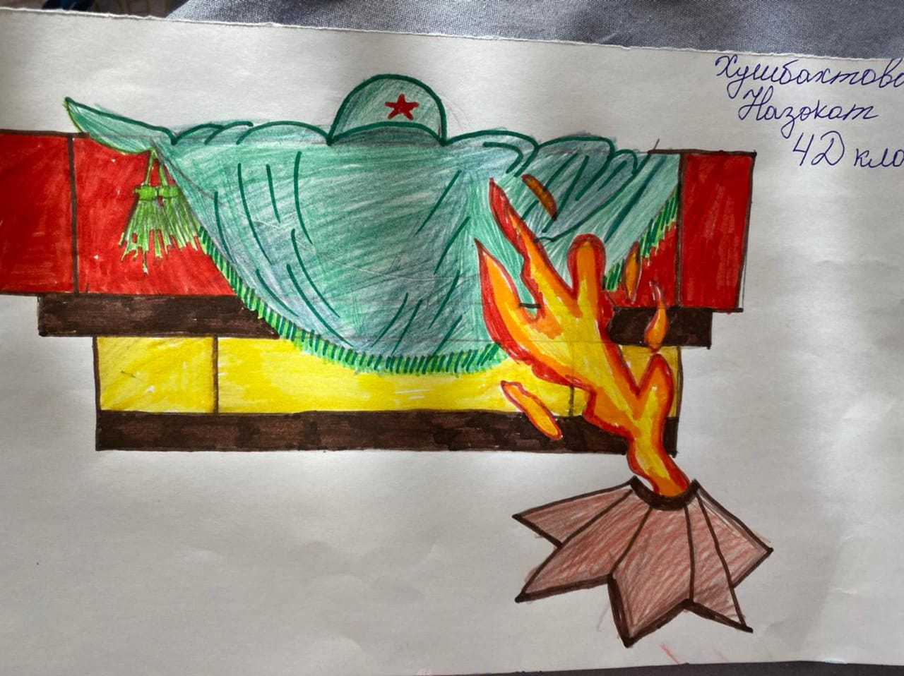 Хушбахтова Назокат, ученица 4"Д" класса принимает участие в патриотической акции Рисуем Победу